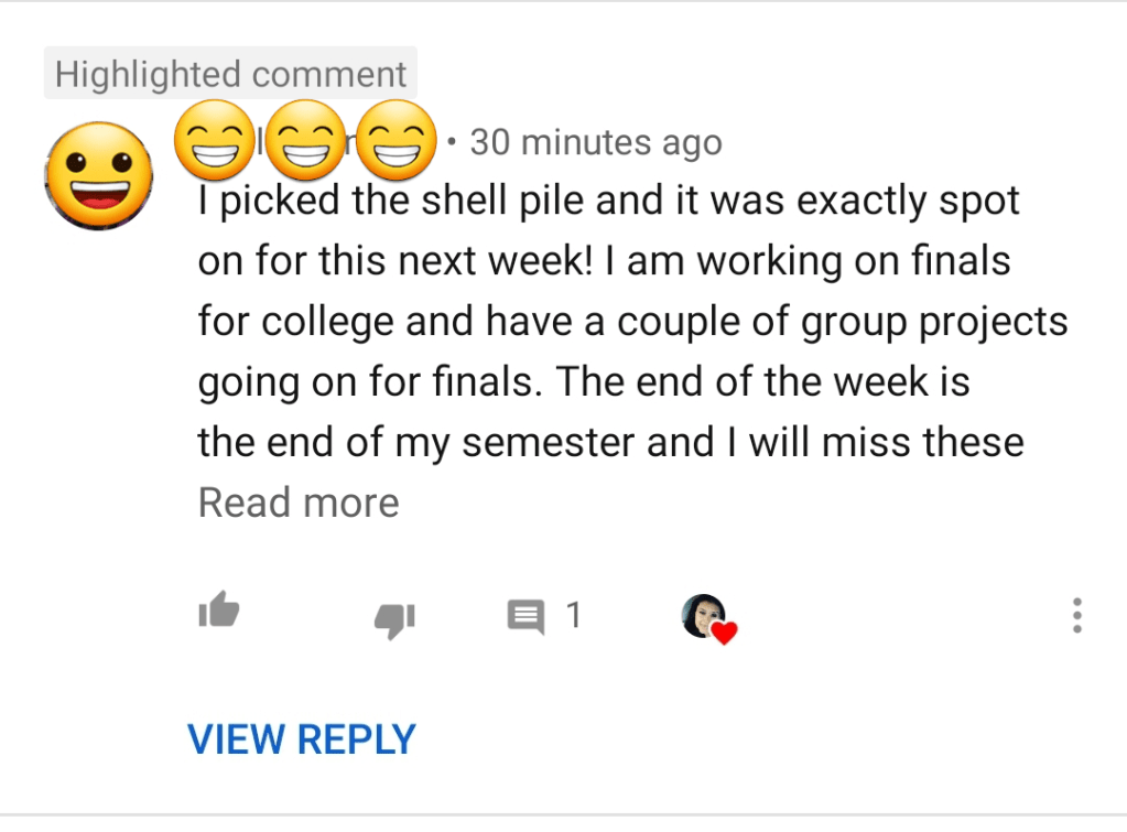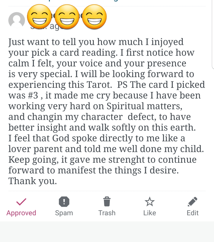 Thank you so much for this (reading). It was so detailed and full of hope, which is needed at this moment…This was an amazing reading and I can’t thank you enough for this!